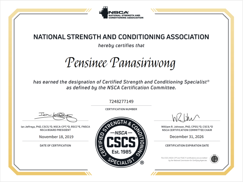 2019 – Present Certified Strength and Conditioning Specialist (CSCS)
