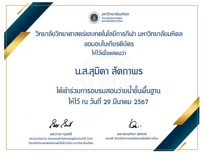 นักศึกษาชั้นปีที่ 4 หลักสูตรวิทยาศาสตร์บัณฑิตสาขาวิทยาศาตร์การกีฬา คณะวิทยาลัยวิทยาศาสตร์และเทคโนโลยีการกีฬา